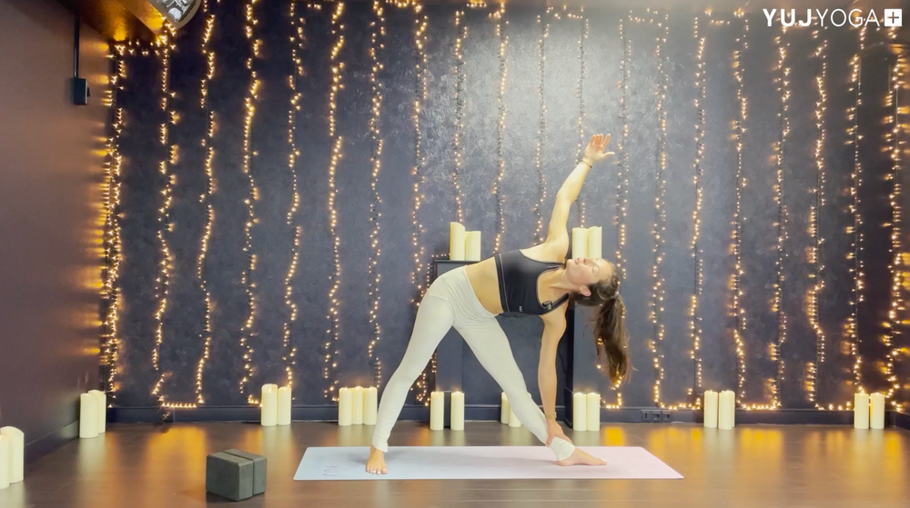 Pratique intensive à travers des ouvertures de hanches, des exercices pour renforcer la sangle abdominale et une posture ludique sur la tête. 50mn pour sculpter son corps.